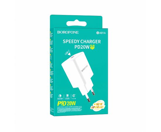 Адаптер Сетевой Borofone BA81A PD Type-C 20W (white) (225519)
