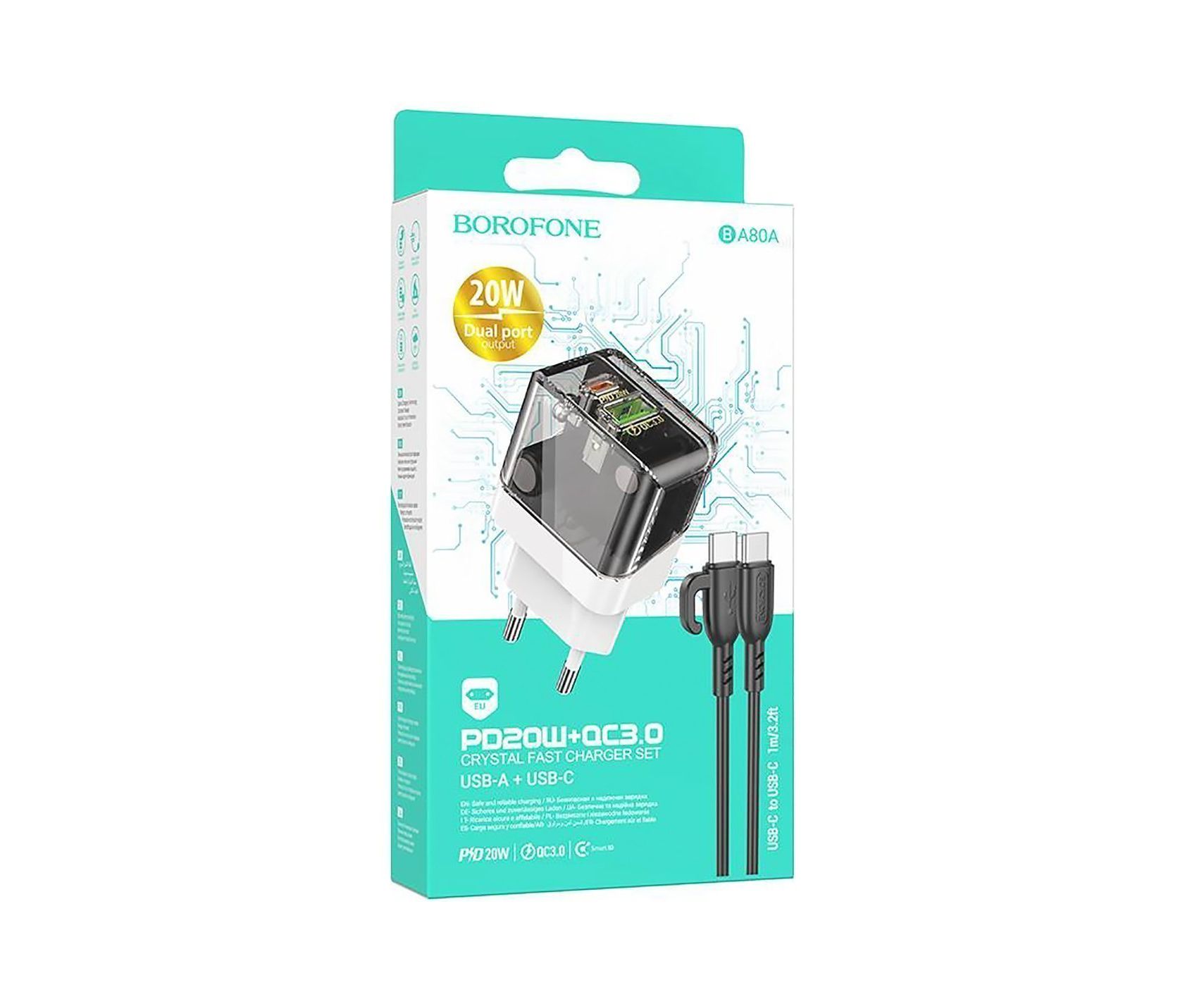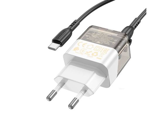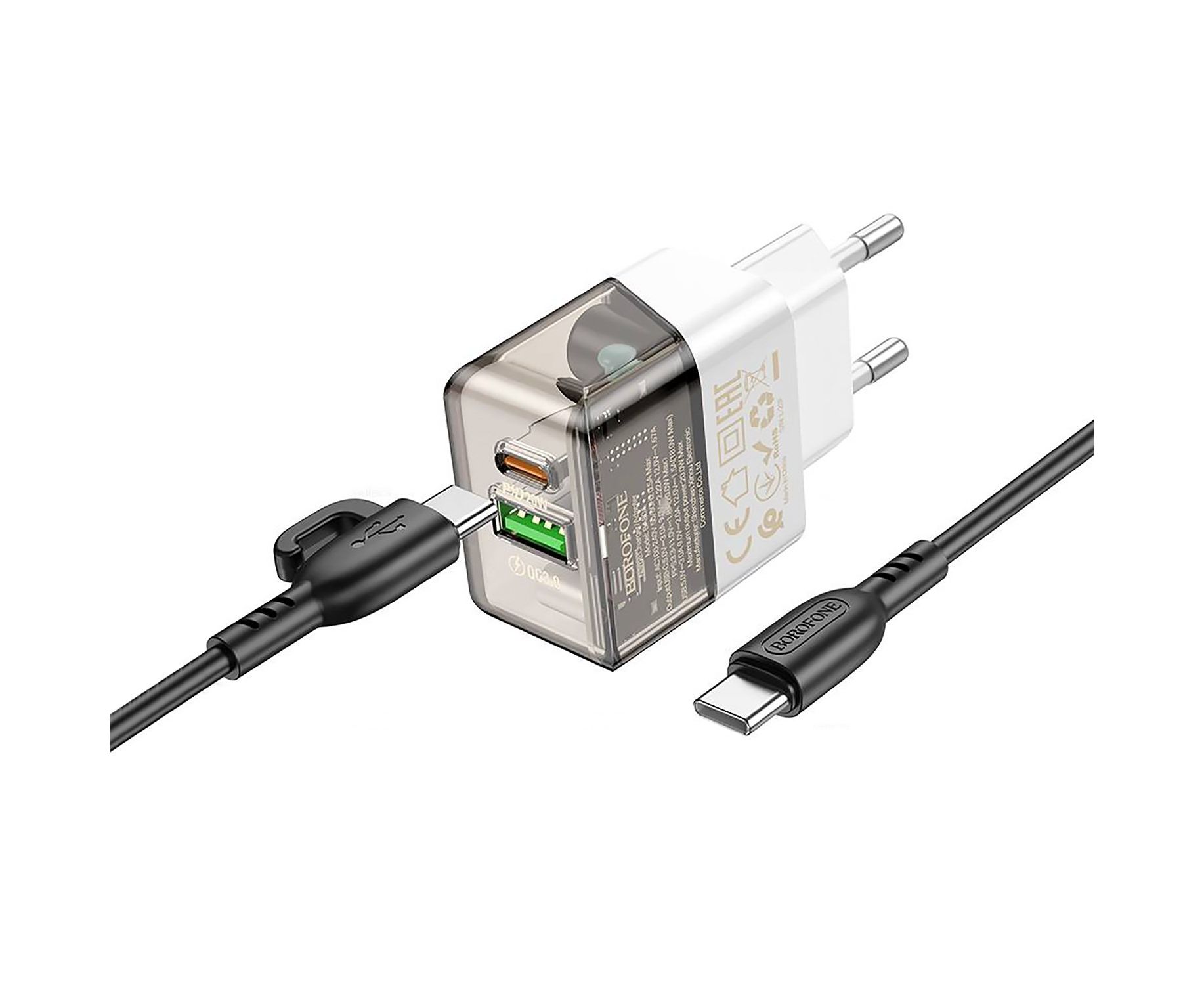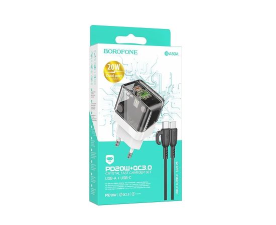 Адаптер Сетевой с кабелем Borofone BA80A Scenery PD+QC USB/Type-C 20W (Type-C/Type-C) (trans(225099)