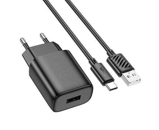 Адаптер Сетевой с кабелем Hoco C134A Solid USB 2,4A/12W (USB/Type-C) (black) (240263)