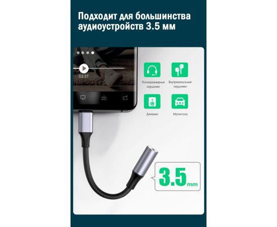 Адаптер UGREEN AV161 80154 Type C Male To 3.5mm Audio Adapter 10cm Space Gray