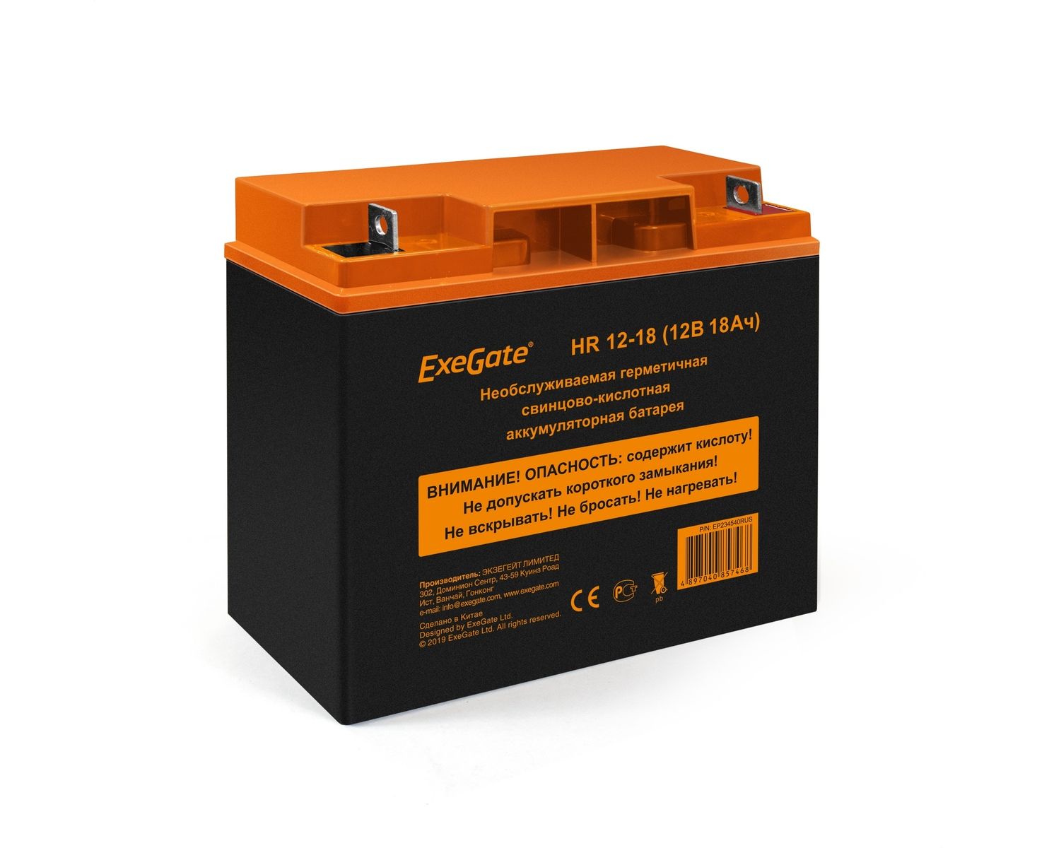 АКБ для ИБП ExeGate EP234540RUS HR 12-18/EXG12180, 181x77x167мм, 12В, 18Ач, клеммы под болт М5