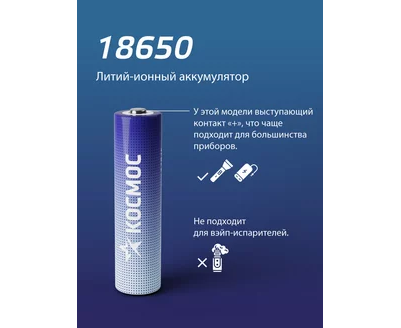 Аккумулятор Космос 18650 Li-ion 1500mAh KOC18650Li-ion15UBL1 без защиты, 1шт блистер