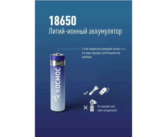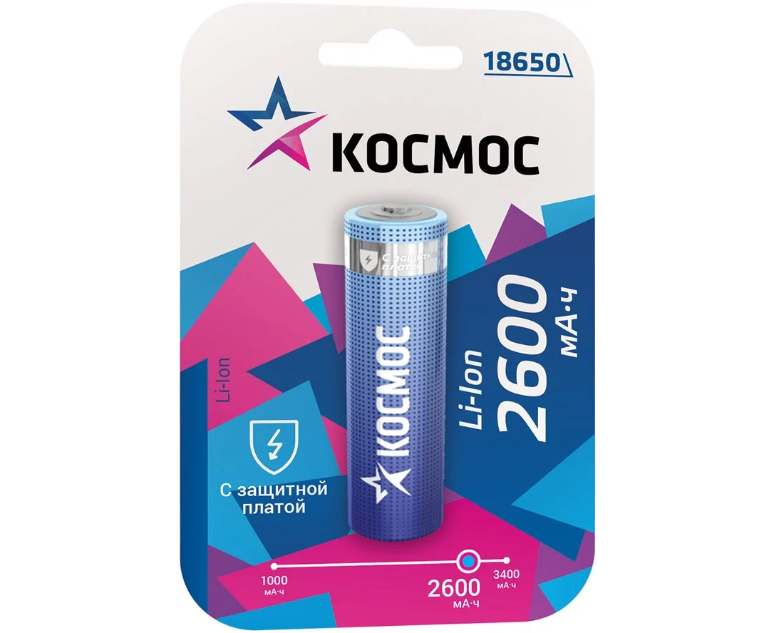 Аккумулятор Космос 18650 Li-ion 2600mAh KOC18650Li-ion26UBL1