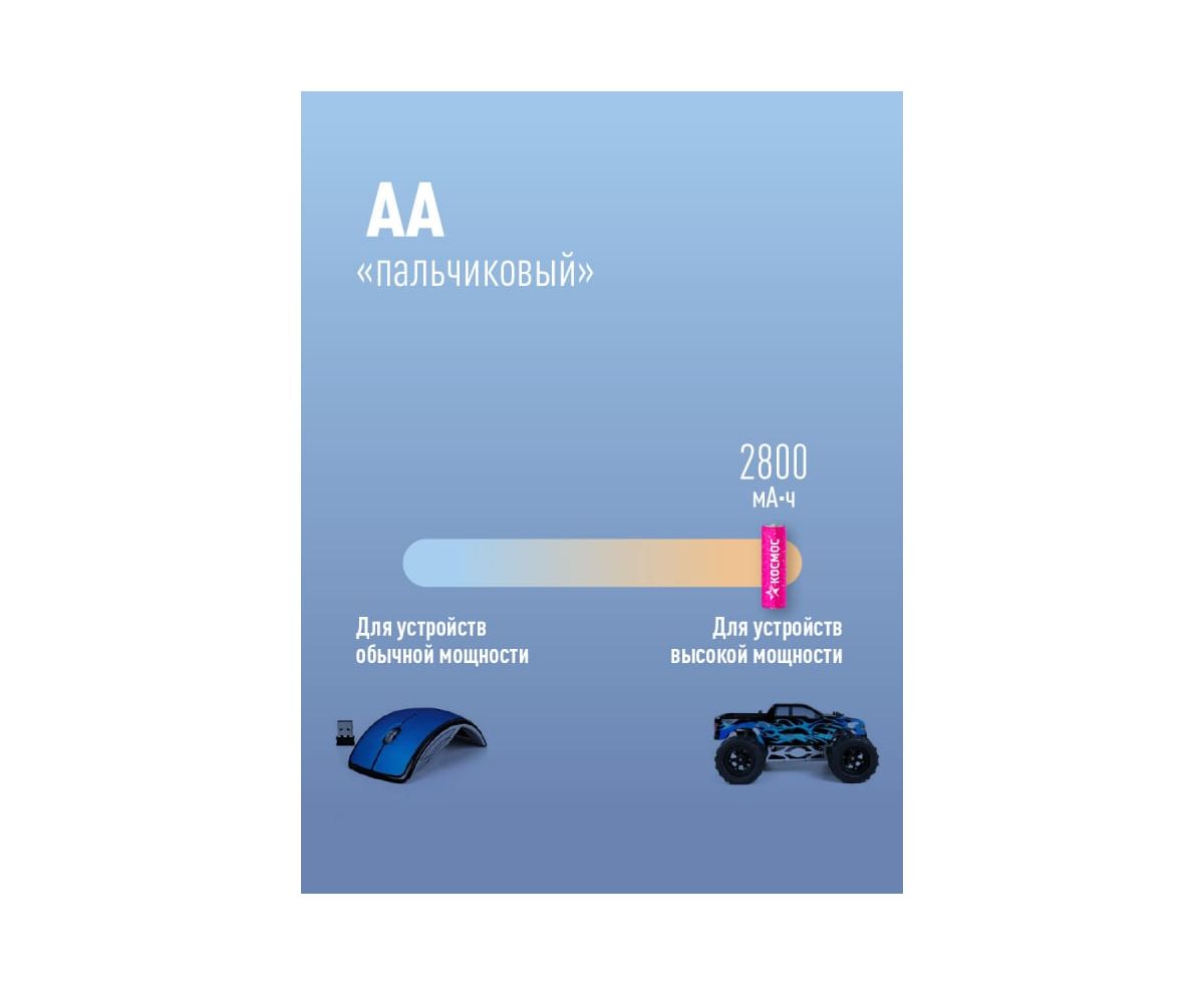 Аккумулятор Космос R6 2800mAh Ni-MH KOCR6NIMH2800mAh4BL 4 на блистере