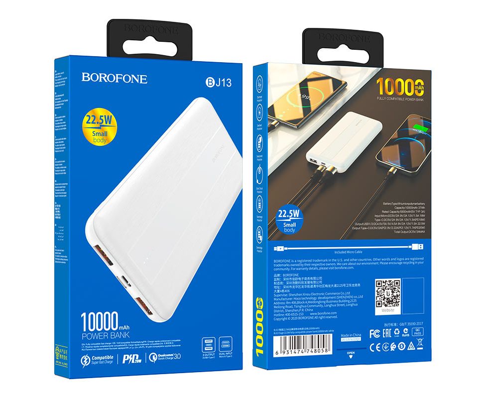 Аккумулятор внешний резервный BOROFONE BJ13 (6931474748058) (белый)