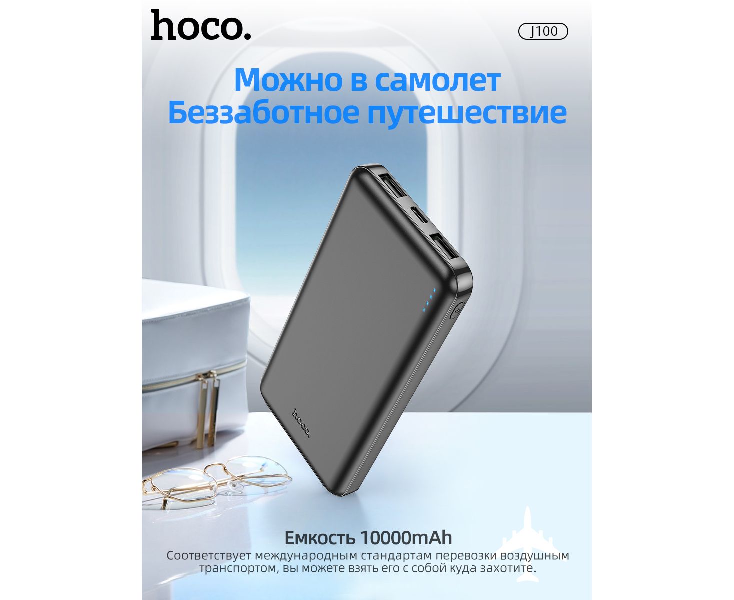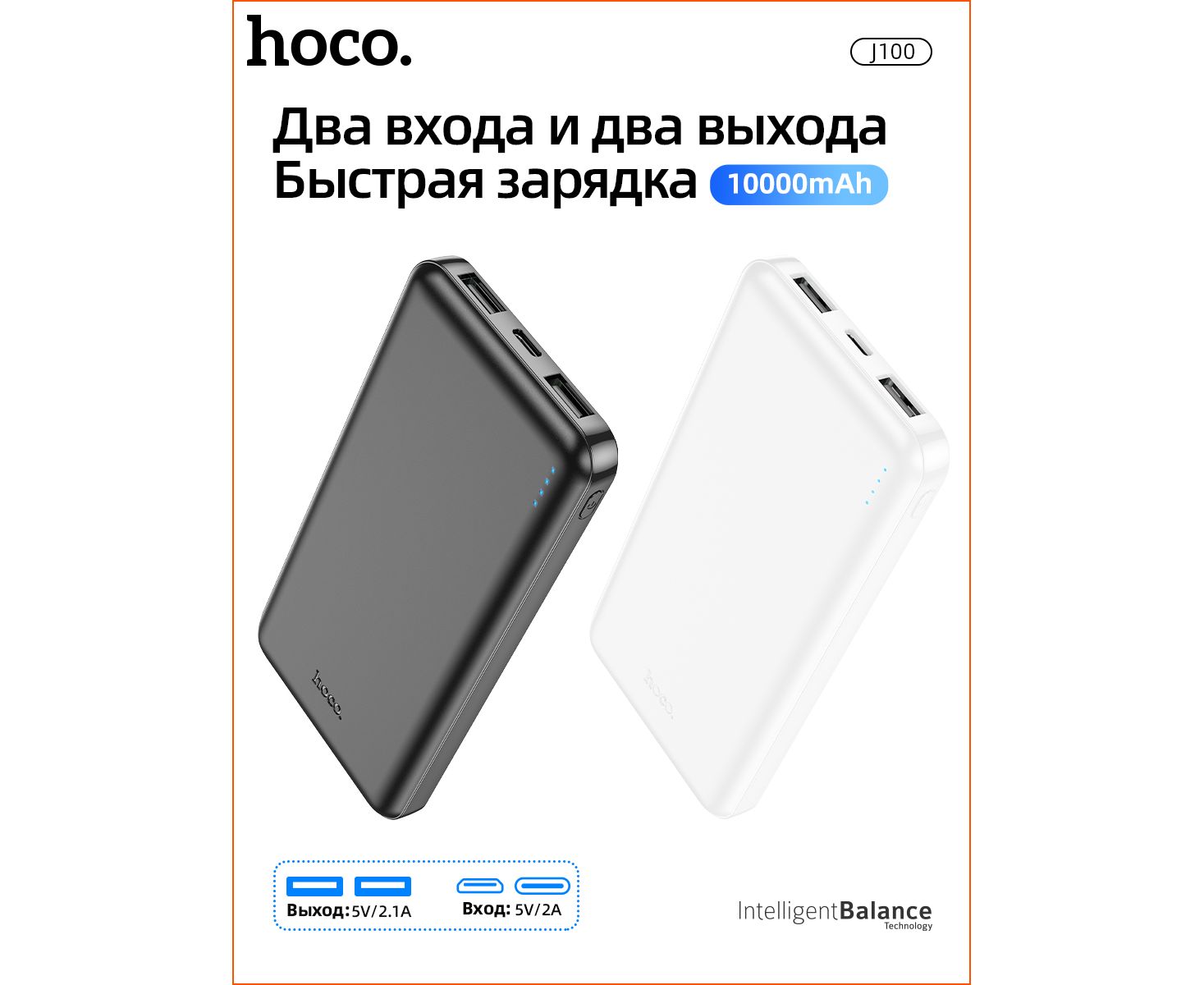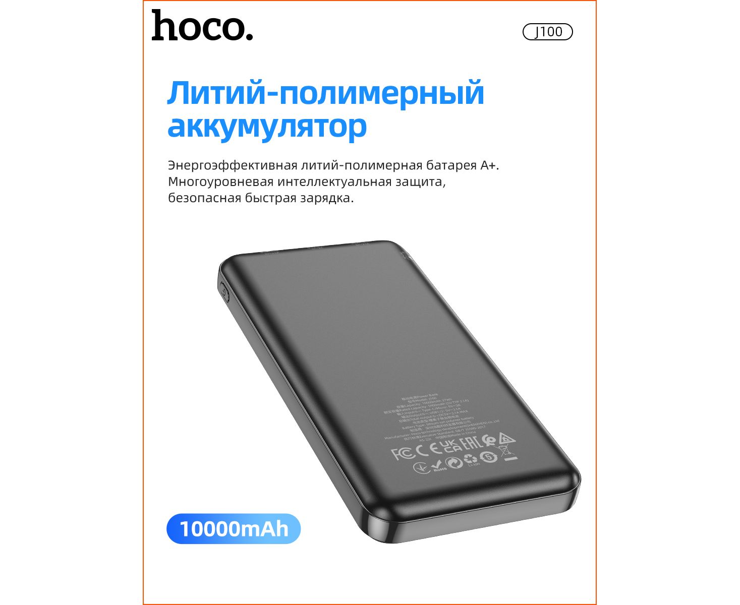 Аккумулятор внешний резервный HOCO J100 High-ranking 10000 mAh (чёрный)