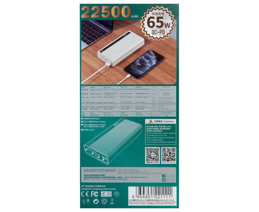 Аккумулятор внешний Remax RPP-272 Hunyo II, 22500mAh, PD65W/QC3.0 белый