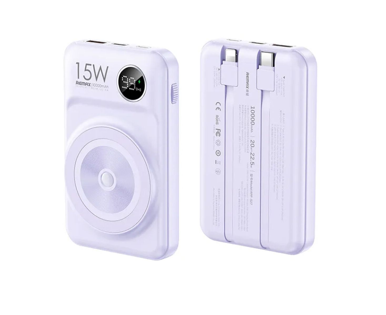 Аккумулятор внешний Remax RPP-527 Lecho Series, 10000mAh, PD20W, QC3.0, QI, Android фиолетовый