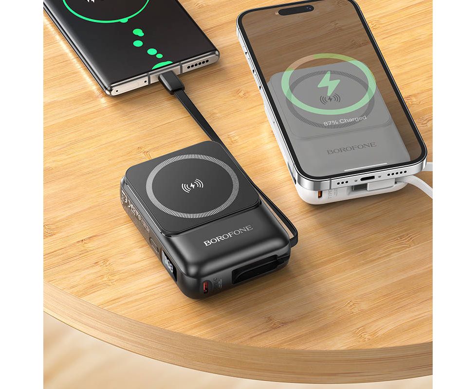 Аккумулятор внешний резервный BOROFONE BJ59 Refined 22.5W+PD20W fully compatible power bank with magnetic cable(10000mAh) (черный)