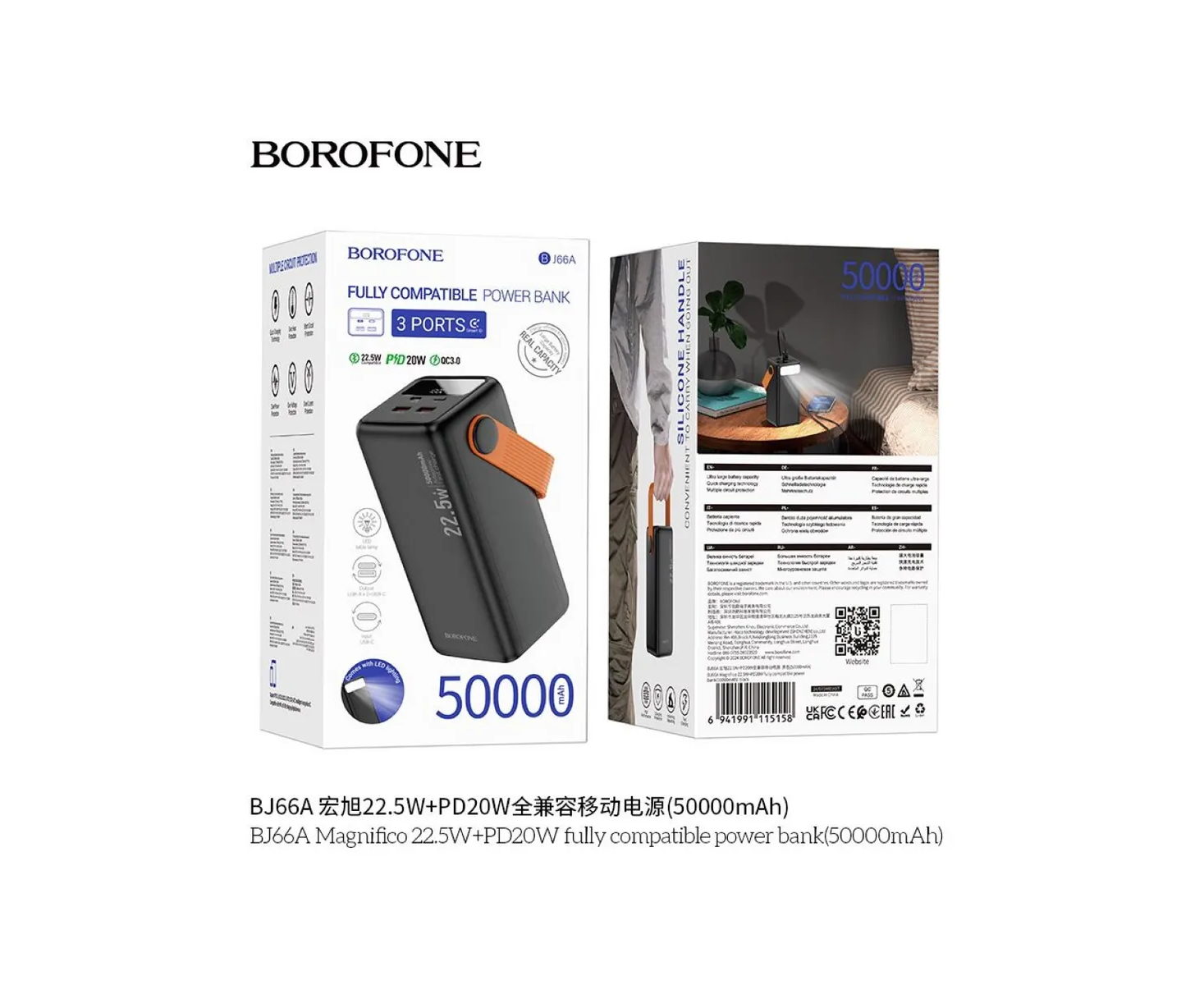 Аккумулятор внешний резервный BOROFONE BJ66A Magnifico 22.5W+PD20W fully compatible power bank(50000mAh) (черный)