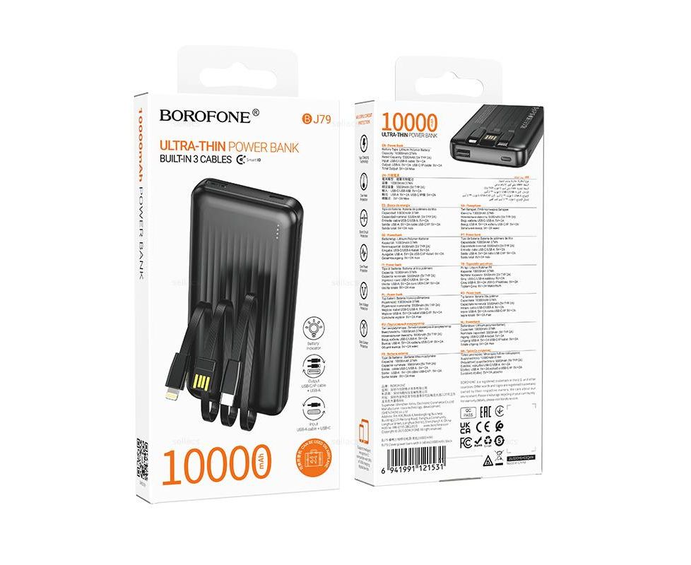 Аккумулятор внешний резервный BOROFONE BJ79 Clever power bank with 3 cables (10000mAh) (черный)