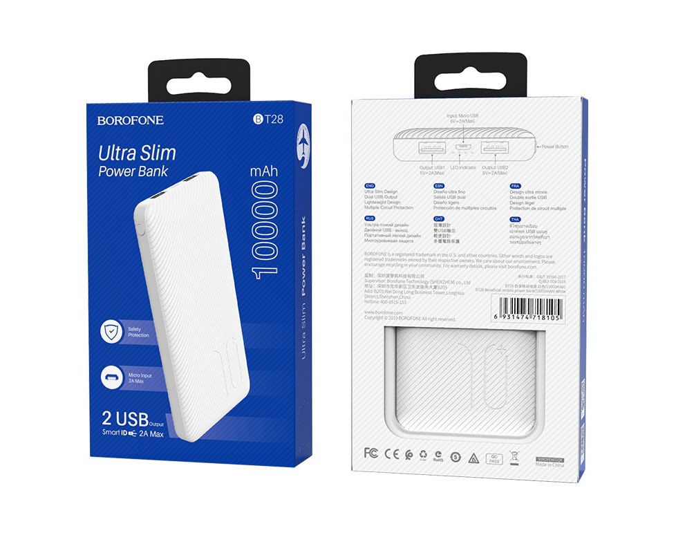 Аккумулятор внешний резервный BOROFONE BT28 Beneficial 10000mAh (белый)