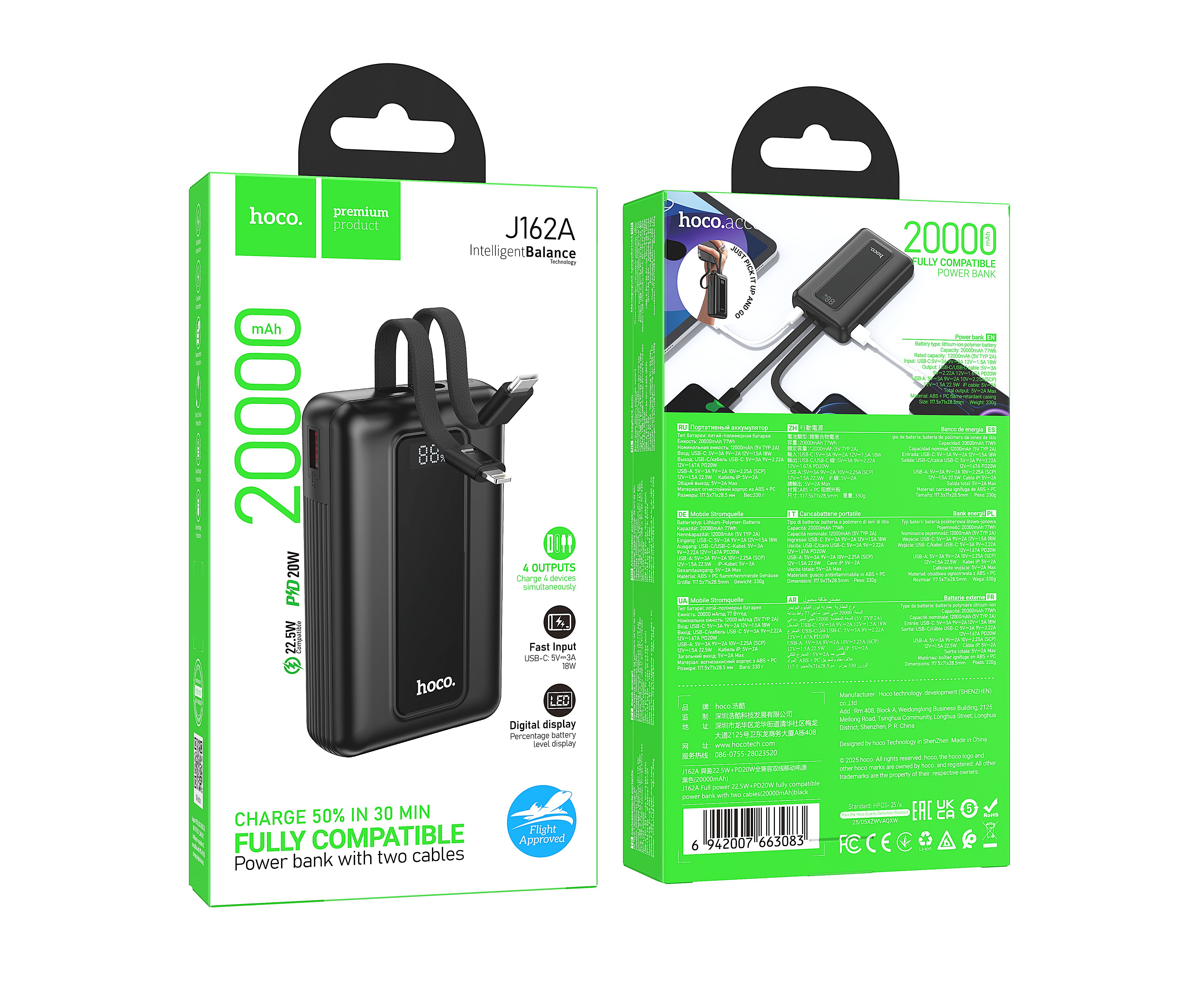 Аккумулятор внешний резервный HOCO J162A Full power 22.5W+PD20W fully compatible 20000mAh (черный)