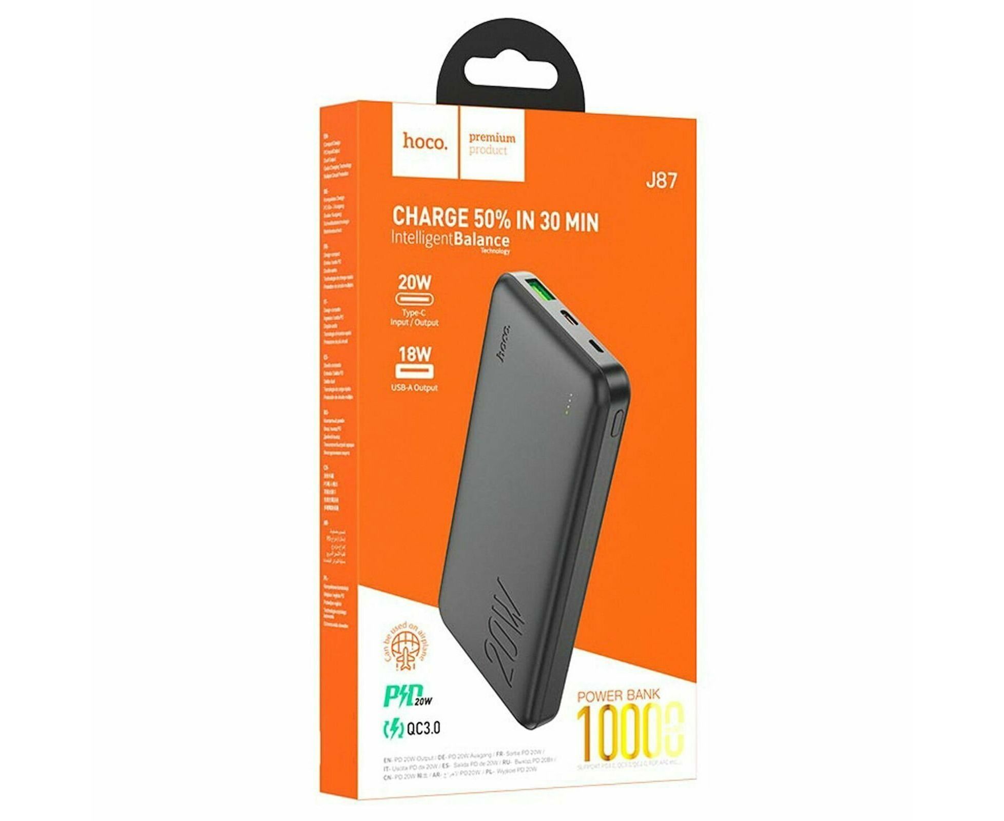 Аккумулятор внешний резервный HOCO J87 Tacker PD20W, QC3.0 10000mAh (чёрный)