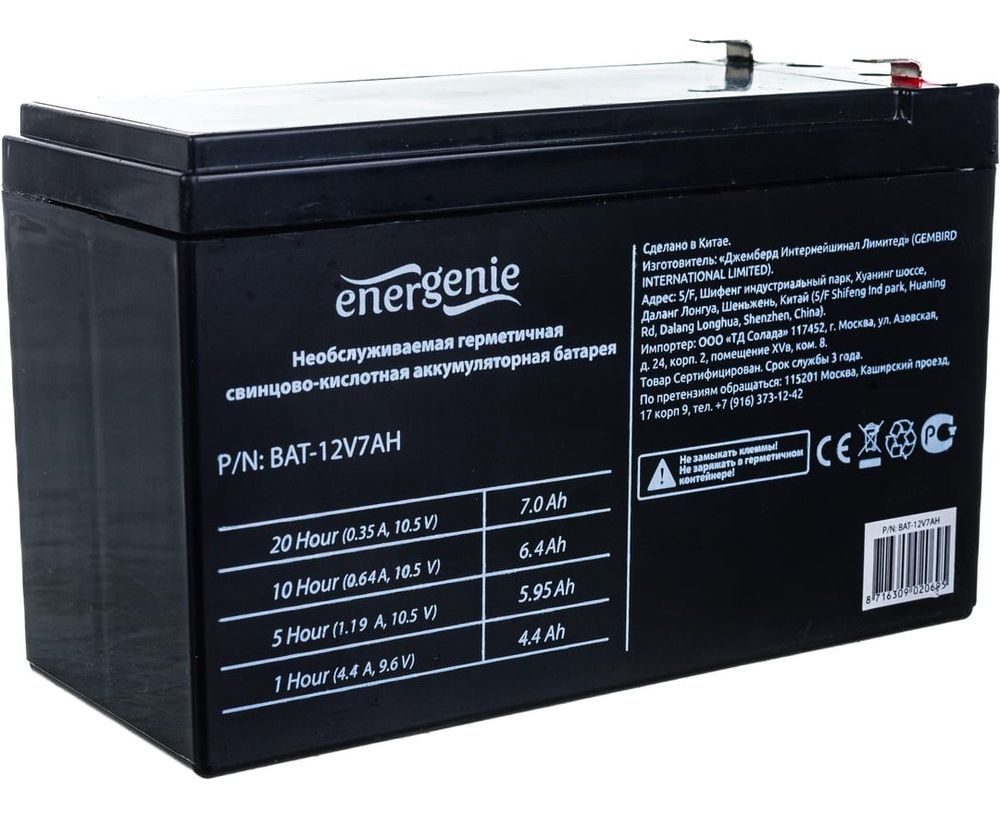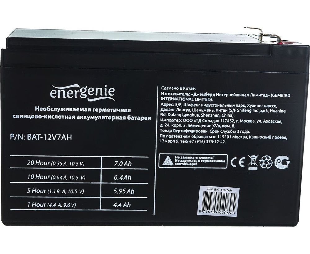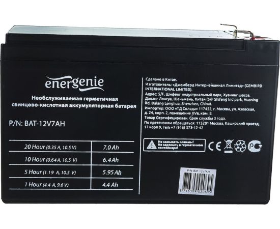 Аккумуляторная батарея для ИБП ENERGENIE BAT-12V7AH любых торговых марок, 12В, 7Ач, 151x65x95мм