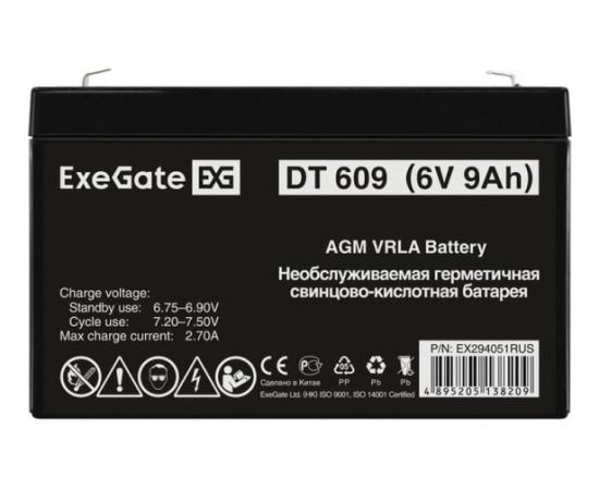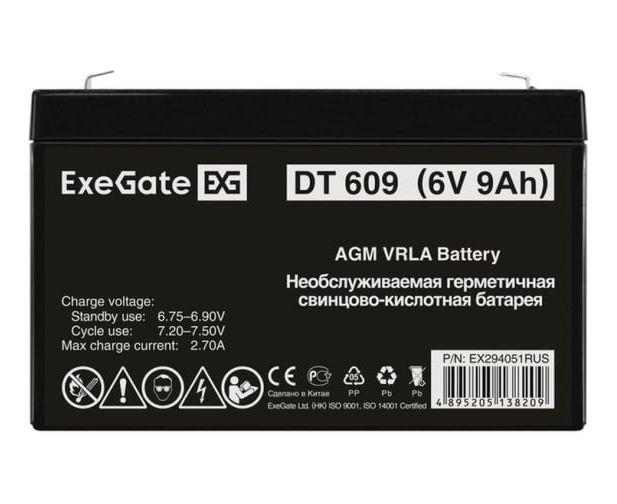 Аккумуляторная батарея ExeGate DT 609 EX294051RUS (6V 9Ah, клеммы F1)