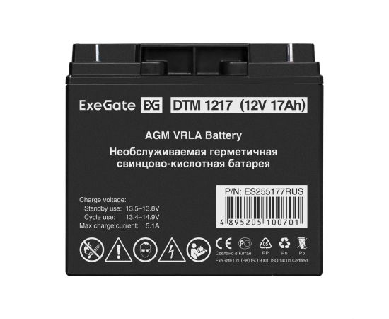 Аккумуляторная батарея ExeGate DTM 1217 (12V 17Ah, клеммы F3 (болт М5 с гайкой) 255177