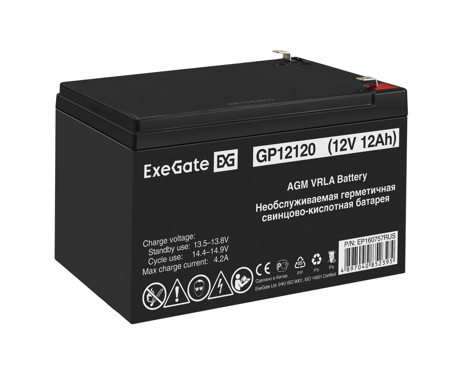 Свинцово-кислотные необслуживаемые аккумуляторы ExeGate серии GP изготовлены по технологии AGM. Обладают низким внутренним сопротивлением и саморазрядом. Оптимизированы для работы в режиме постоянного подзаряда (буферный режим) или в режиме разряд-заряд (циклический режим).