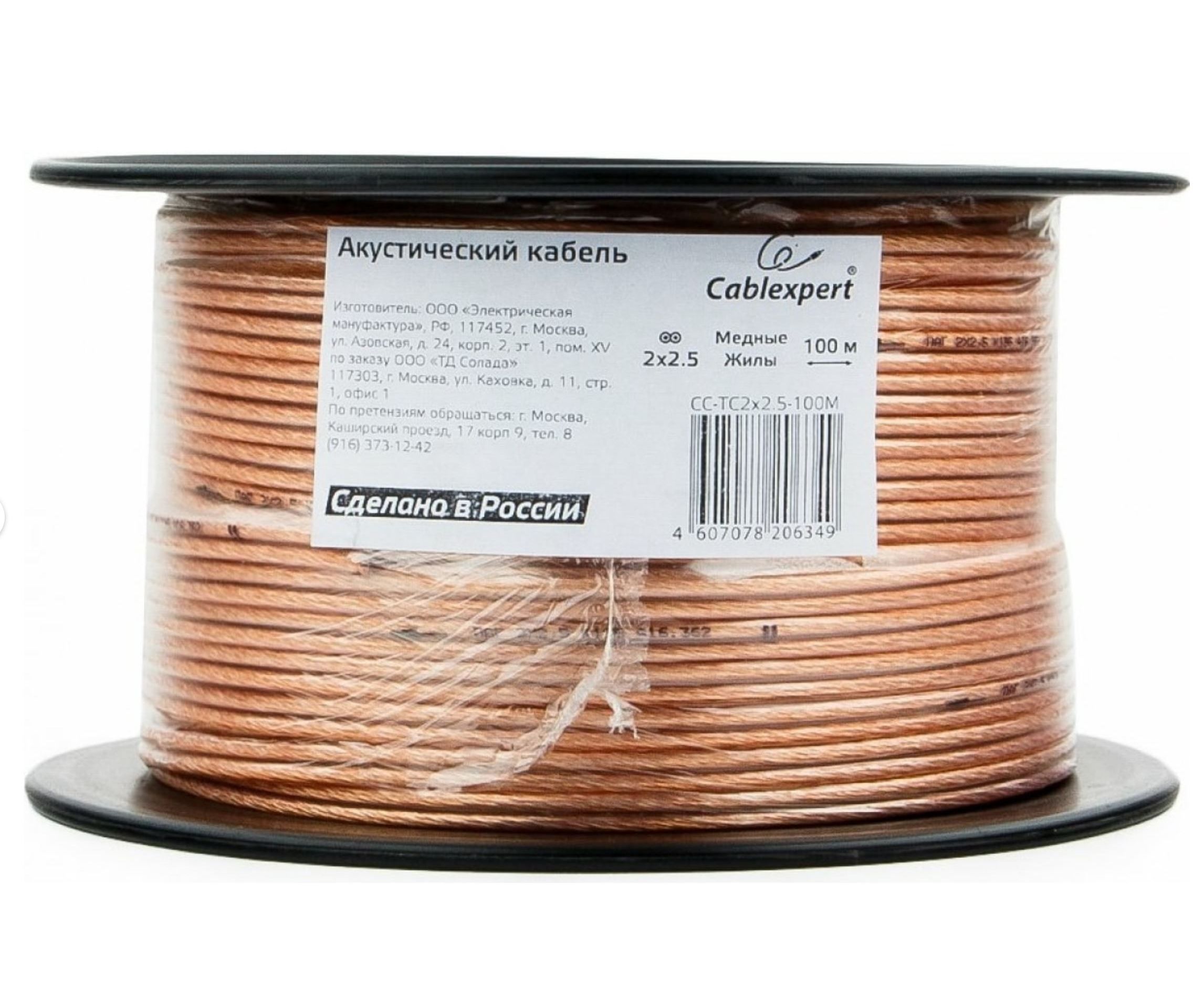 Акустический кабель Cablexpert CC-TC2x25-100M прозрачный 100м на катушке