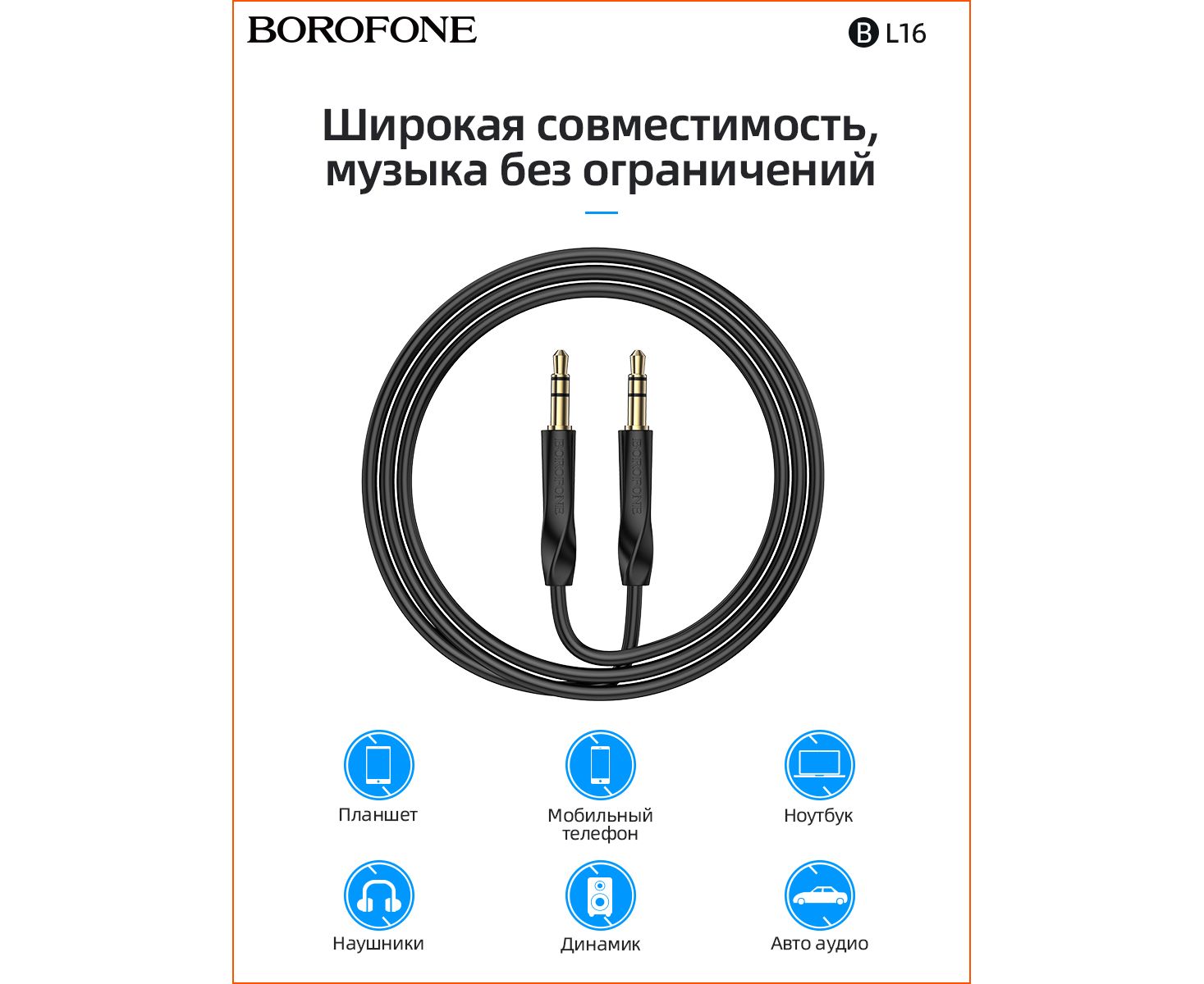 Аудио-кабель BOROFONE BL16 Clear sound AUX (чёрный)