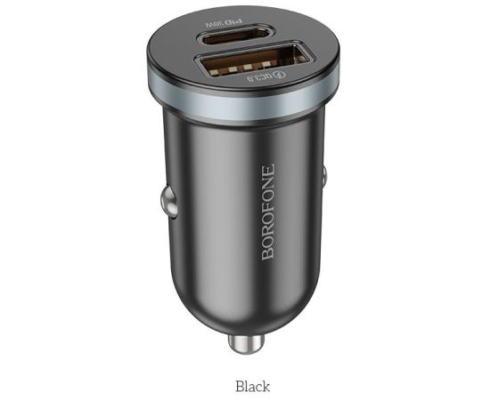 Автомобильное зарядное устройство BOROFONE BZ22/ АЗУ/ PD + QC 3.0/ 2 USB: Type-C + Type-A/ Выход: 30W + 18W/ Черный