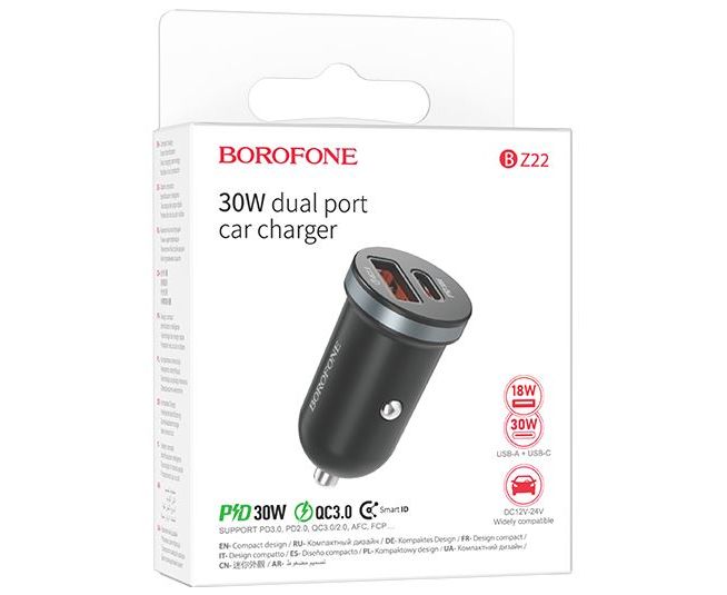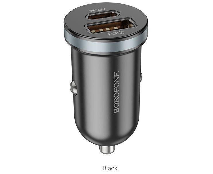 Зарядное устройство автомобильное BOROFONE BZ22 2 порта - USB 3.0 Type-A (18W) + 1 PD USB Type-C (30W) Quick Charger для быстрой зарядки смартфона и прочих мобильных устройств.