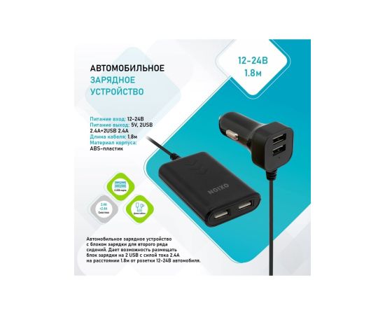 Автомобильное зарядное устройство Oxion с дополнительным блоком 2x2.4 А, 4 USB.