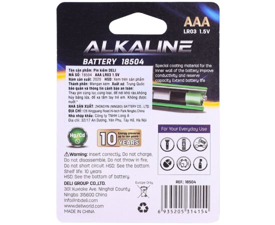 Батарея Deli E18504 AAA, 1.5V, 2шт