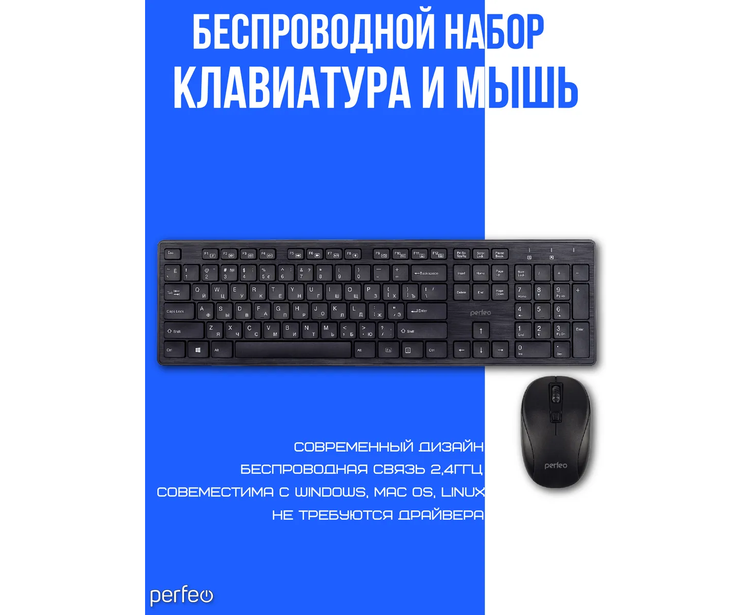 Беспроводной набор клавиатура + оптическая мышь Perfeo "TWIN": USB, (Арт. PF_A4500)