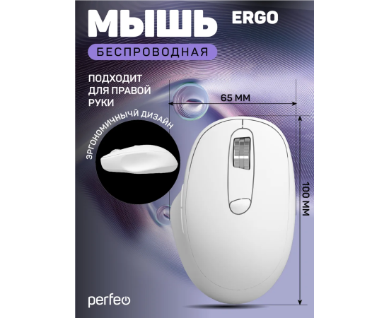 Беспроводная мышь Perfeo, оптич. "ERGO", 6 кн, 800-1600 DPI, USB, белый