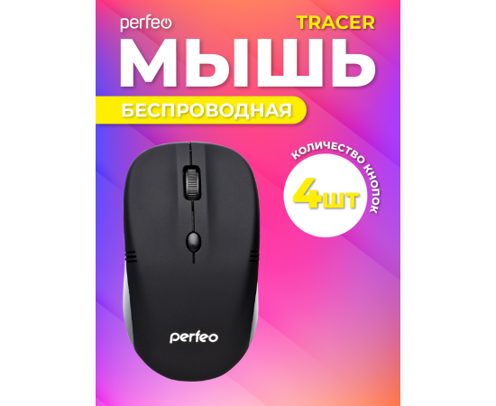 Беспроводная мышь Perfeo, оптич. "TRACER", 4 кн, 1200 DPI, USB, чёрный, (Арт. PF_4144)