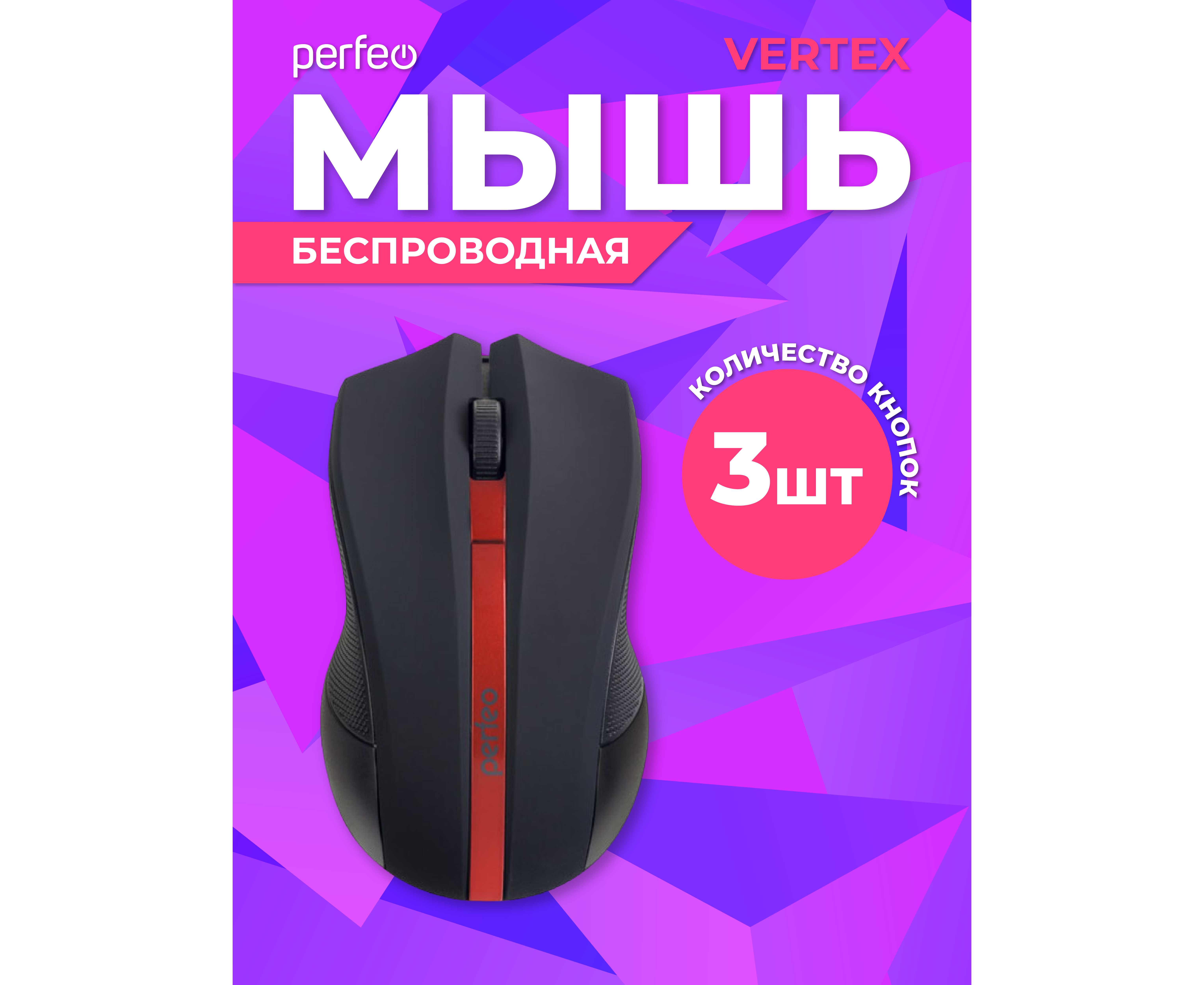 Беспроводная мышь Perfeo, оптич. "VERTEX", 3 кн, DPI 1000, USB, чёрный/красный, (Арт. PF_A4779)