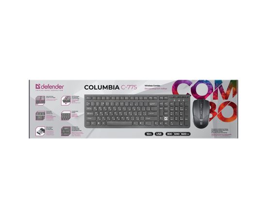 Беспроводной набор Defender Columbia C-775 мембранная клавиатура+мышь (black) (218141)