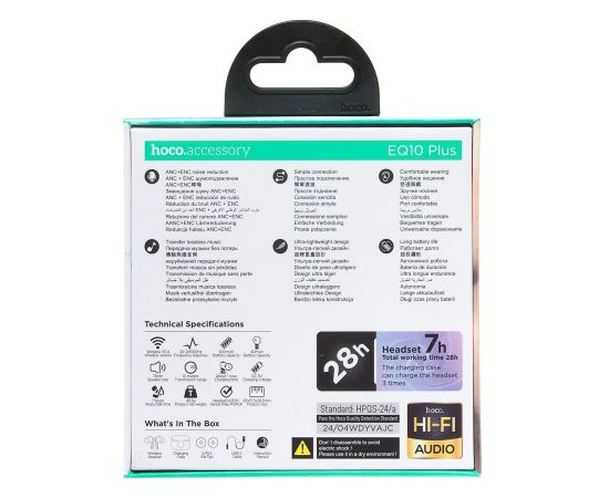Беспроводные Bluetooth-наушники Hoco TWS EQ10 Plus ANC+ENC (black) (234622)