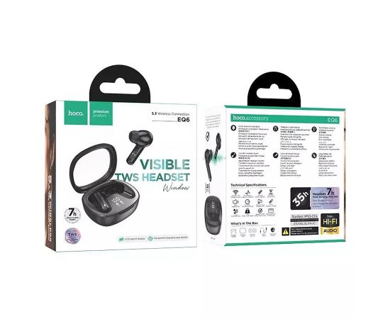 Беспроводные Bluetooth-наушники Hoco TWS EQ6 Shadow (black) (225054)
