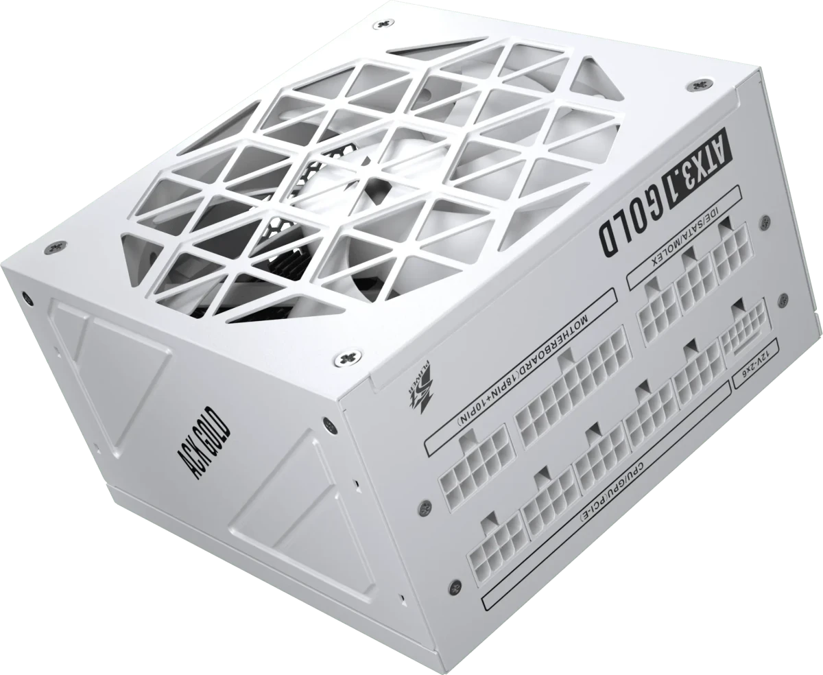 Блок питания 1STPLAYER Ack Gold 850W White (HA-850BA2-WH) / ATX 3.1, PCle 5.1, APFC, 80 Plus Gold, LLC+DC-DC, full Teapo caps, 140mm fan, full modular