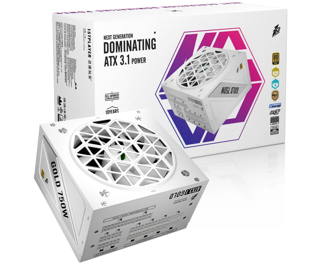Блок питания 1STPLAYER NGDP Gold 750W White (HA-750BA4-WH) /ATX 3.1, APFC, 80 Plus Gold, LLC+DC-DC, full Japan solid-state caps, 120mm fan, full mod
