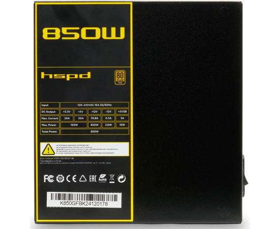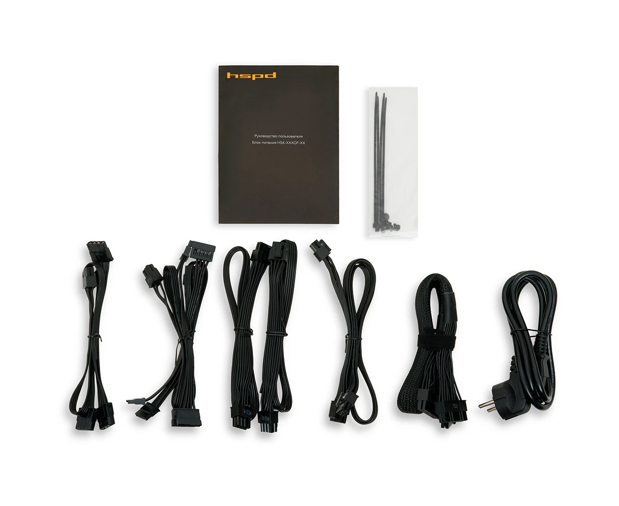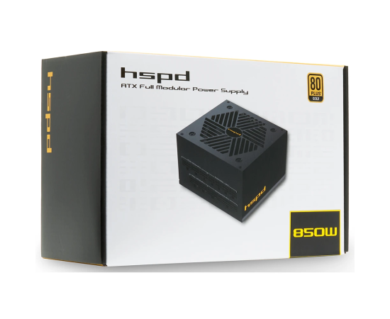 Блок питания HSPD HSK-850GF-BK 850W 80+ Gold (ATX, 2.52, Full modular, 1x24(20+4)pin mesh 550mm, 1xCPU*2 8(4+4)pin 650+150mm, 2xPCIe*2 8(6+2)pin