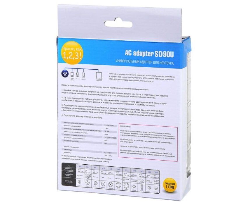 Описание: Универсальный сетевой адаптер для ноутбуков основных производителей со встроенным USB-портом, через который Вы сможете подзаряжать смартфон, планшет, навигатор или MP3-плеер. Автоматический выбор выходного напряжения, с помощью подключения необходимого переходника. Защита от перегрузки и перегрева.