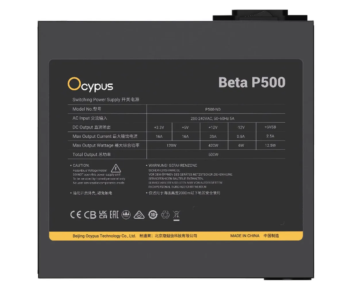 Блок питания Ocypus Beta P500 BK (Beta-P500-N1HDBK024X-EU) 500W (ATX, APFC, 20+4 pin, 120mm fan, PCI-E 6+2Px2, 3xSATA)