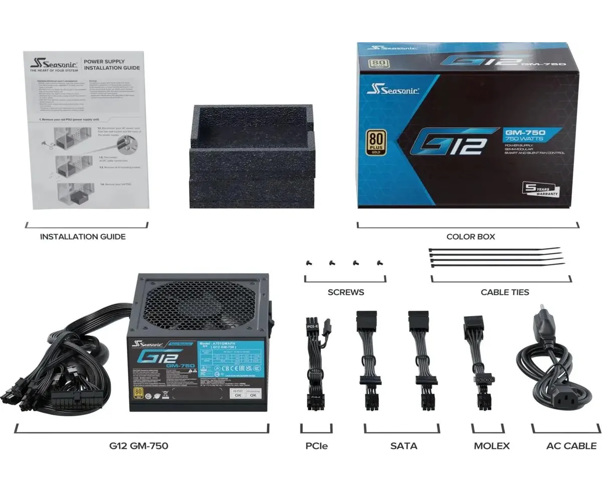 Блок питания Seasonic G12 GM-750 (g12 gm-750 ssr-750fm), 750Вт, 120мм, черный, retail
