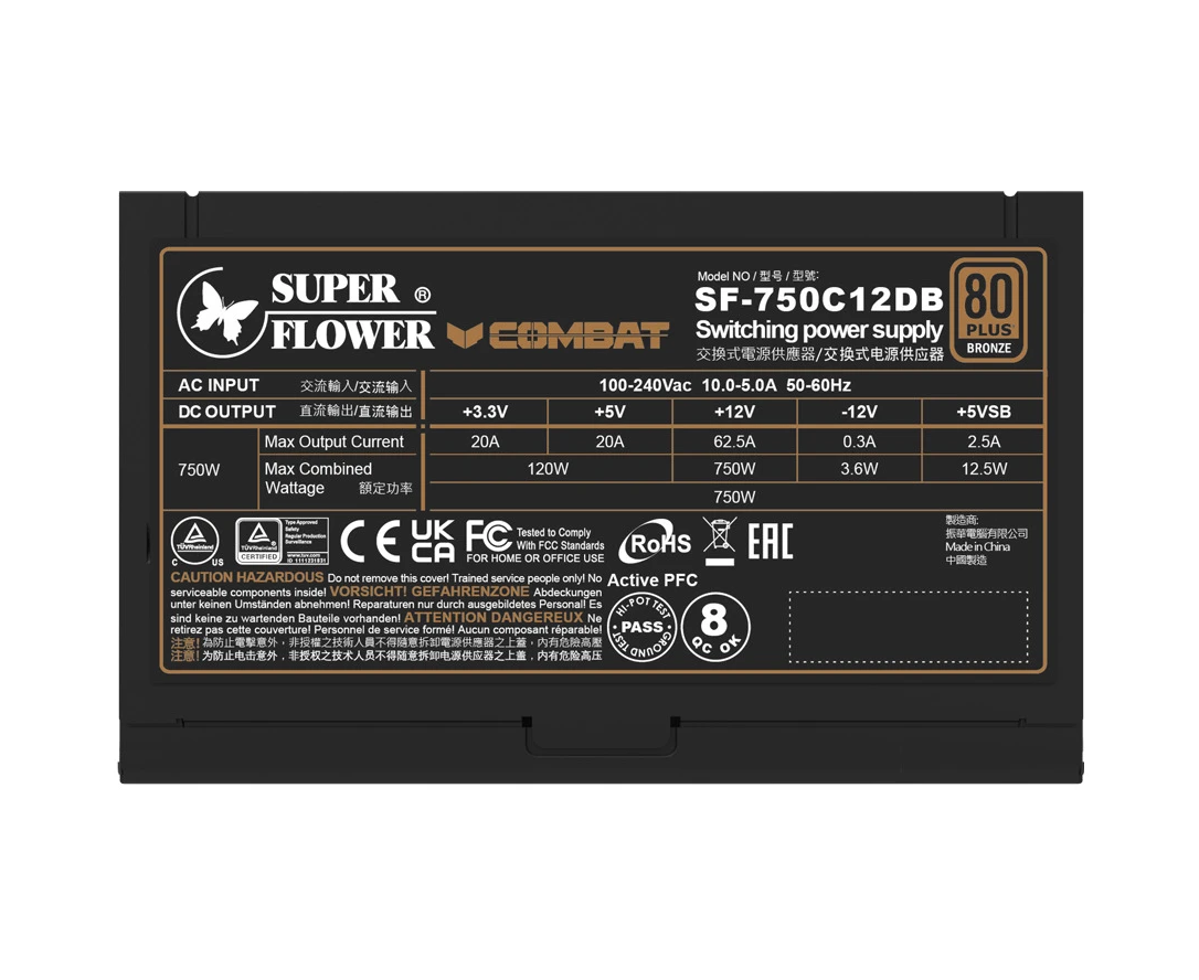 Блок питания Super Flower Combat DB SF-750C12DB 750W ATX3.1 ATX 3.1, 120mm, 6xSATA, 3xPCI-E(6+2), 1xPCI-E 16, APFC, 80+ Bronze