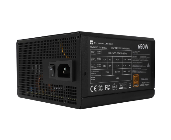 Блок питания Thermalright TR-TB650S 650W 80+ Bronze (ATX, 3, Non-modular, 1x24(20+4)pin 550mm, 1xCPU*2 8(4+4)pin 600+150mm, 1xPCIe*2 8(6+2)pin)