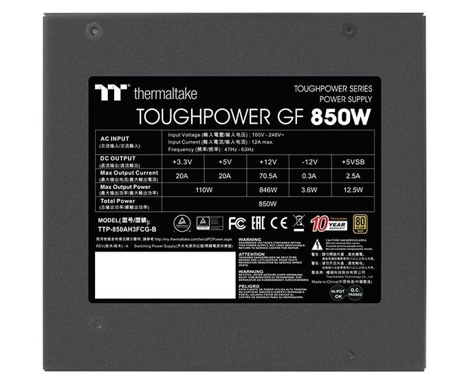 Блок питания Thermaltake Toughpower 850 (PS-TPD-0850FNFAGE-2) 850W, 80 Plus Gold, полностью модульный