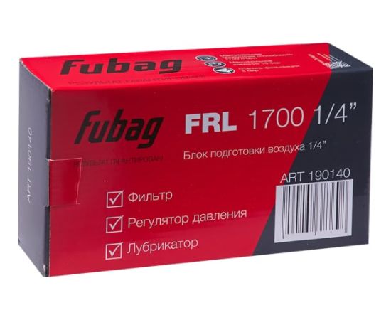 Блок подготовки воздуха FRL 1700 1/4" FUBAG 190140 предназначен для подготовки сжатого воздуха в пневмосистемах различного назначения.