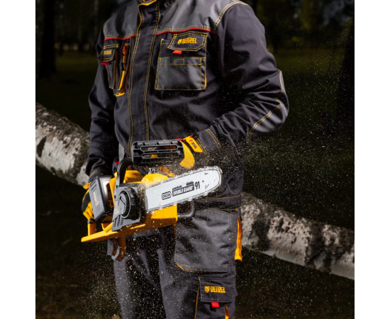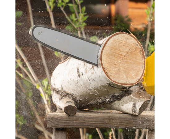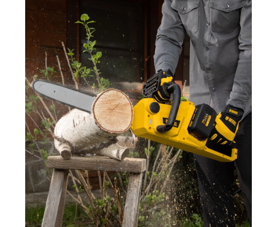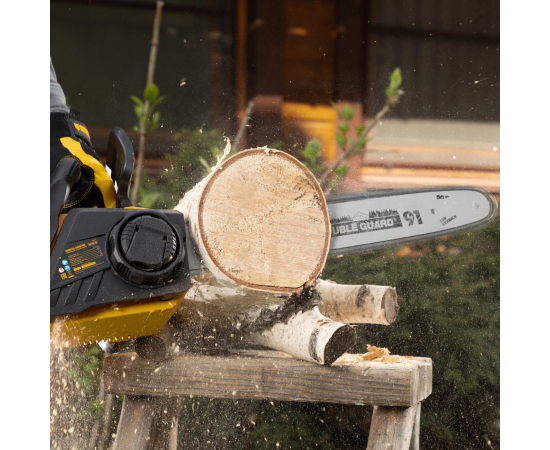 бесщёточный двигатель; одновременная работа от двух батарей 18 В; толщина ведущего звена цепи: 1.3 мм, количество звеньев: 56 шт.