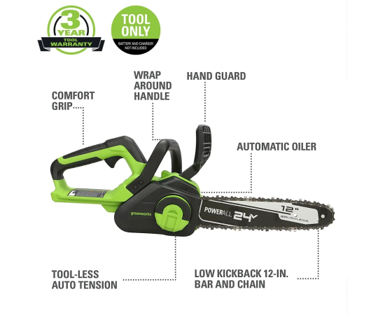 Цепная пила аккумуляторная GREENWORKS GD24CS30 (2007007) без АКБ и ЗУ