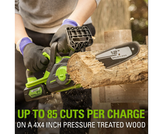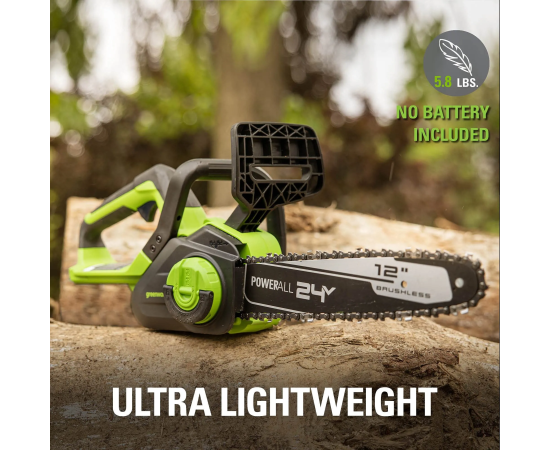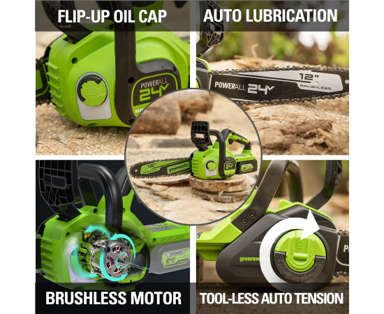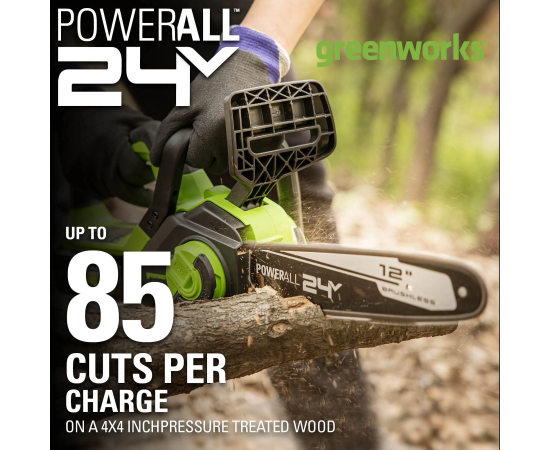 Аккумуляторная пила Greenworks GD24CS30 - небольшая, легкая (всего 2,6 кг.) садовая пила с современным бесщеточным двигателем. Благодаря ее компактным размерам она легко помещается в багажнике автомобиля или даже в рюкзаке.