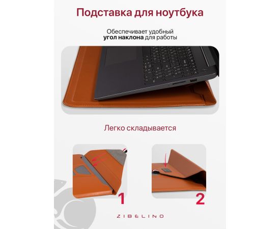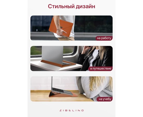 Чехол для ноутбука для MacBook Pro, Air, и планшетов Samsung, Xiaomi, KENSHI, Tecno, Teclast, Lenovo (диагональ 15.4-16.1") с регулируемой подставкой, с застежкой на липучке, коричневый (сумка портфель для макбука)