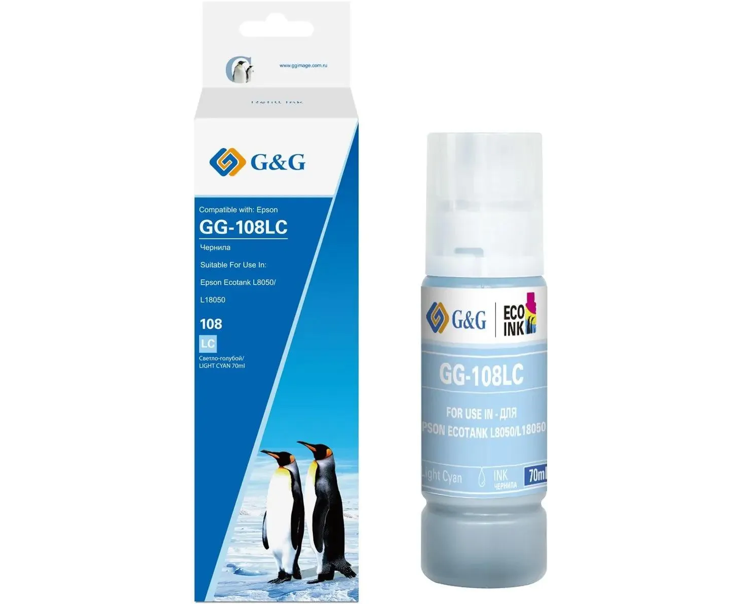 Чернила G&G GG-108LC C13T09C54A светло-голубой70мл для Epson Ecotank L8050/L18050